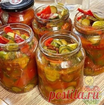 1,5 кг капусты, 1,5 кг помидоров, 1 кг огурцов, 1 кг лука, 1 кг моркови, 0,5 кг перца. Для маринада: 1 стакан сахара, 100 мл раст масла, 100 мл столового уксуса, 2 ст. л соли, лавровый лист и черный перец горошком по вкусу. Капусту нашинковать тонкой соломкой, морковь на крупной терке, перец – соломкой, огурцы, помидоры, лук – кубиками. Все овощи выложить в кастрюлю, залить ингредиентами для маринада, хоро...