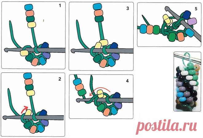 Вязание с бусинами без предварительного нанизывания бусин на нить.
