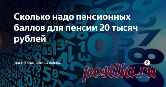 Сколько надо пенсионных баллов для пенсии 20 тысяч рублей Страховая (трудовая) пенсия по старости состоит из двух частей: фиксированной выплаты и денежного эквивалента пенсионных баллов. Дзен-канал «ПРАВО ИМЕЮ» подсчитал, сколько нужно заработать пенсионных баллов, чтобы получать пенсию в 20 тысяч рублей.
