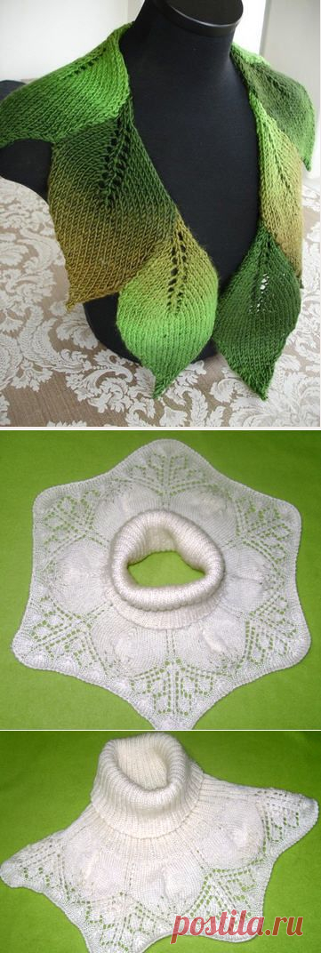 Уютные шарфы и манишки с узором «листья» — Рукоделие