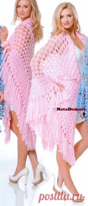 Шаль из голубой и синей пряжи. Связать шаль крючком, схема. - Схемы вязания шали - Схемы для вязания - Уроки вязания крючком - Вязание крючком, мотивы, схемы для вязания крючком