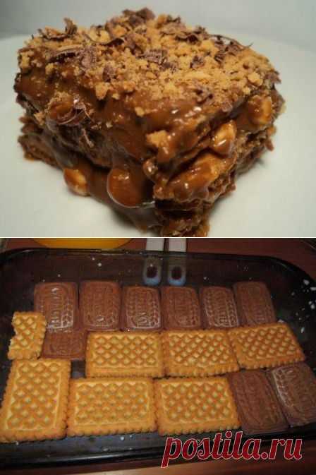 Торт с печеньем, шоколадом и сгущённым молоком без выпечки :)