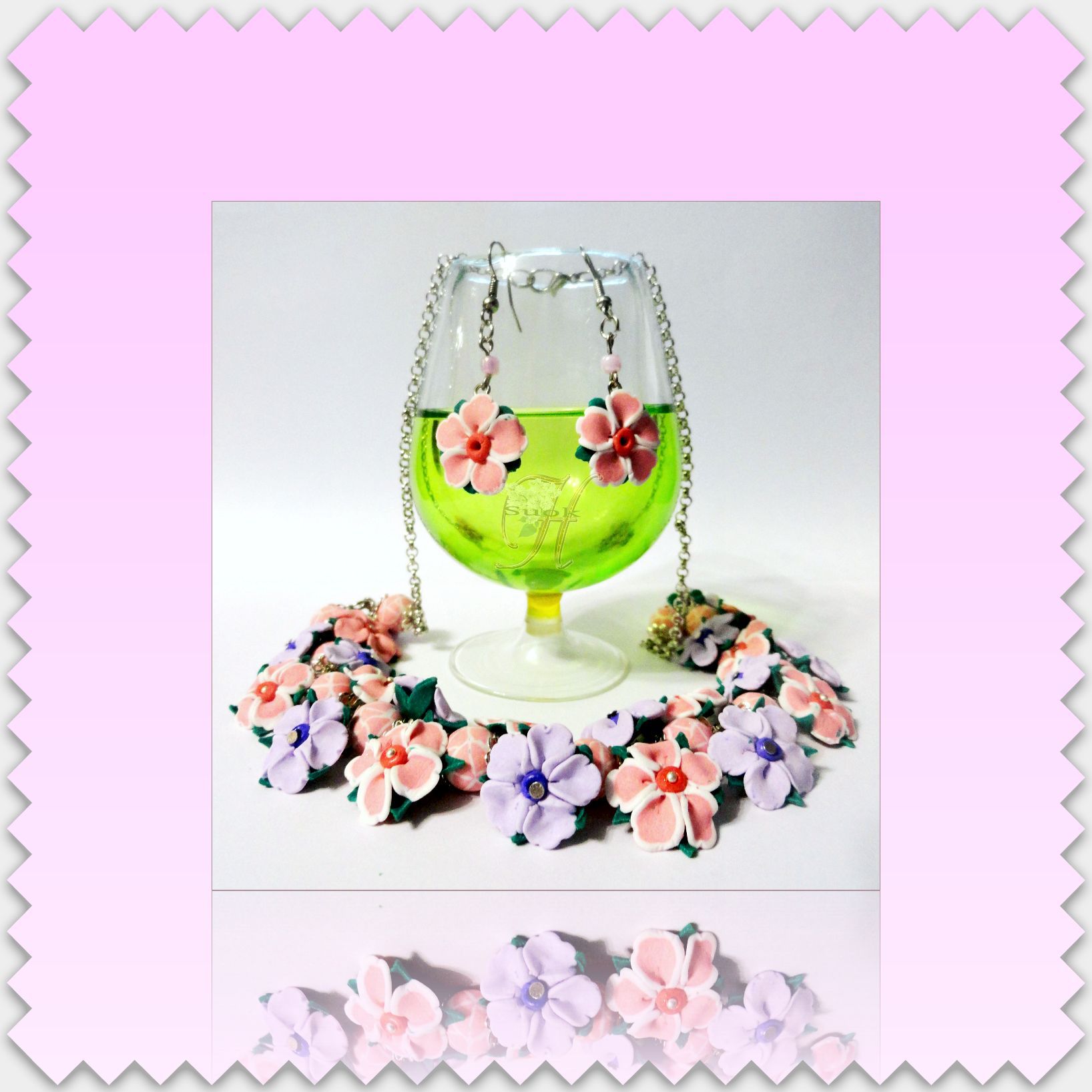 Комплект ,,Анютины глазки".Колье и серьги.Выполнен из полимерной глины.