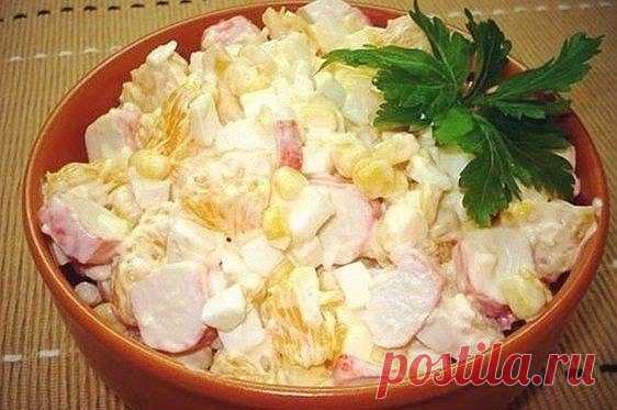 Этот салат я придумала сама и дала ему такое название.В наличии были некоторые ингредиенты купленные на новогодние праздники,таким образом и сформировался этот салат.Получилось вкусно и сочно,а подача в фужерах вышла очень праздничной.