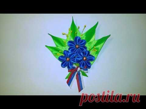 Бутоньерка для выпускника Незабудки в технике канзаши
