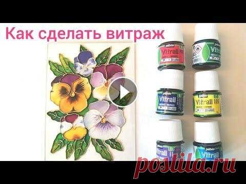 Как сделать витраж. Витражная роспись "Анютины глазки" В мастер-классе показан процесс создания рисунка на стекле с помощью витражных красок Vitrail Pebeo. Работа витражными красками Vitrail имеет свои осо...