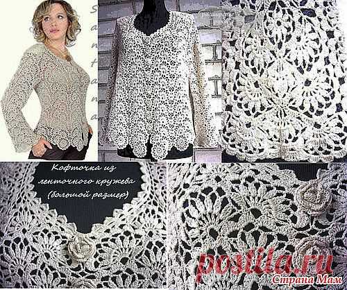 КОФТОЧКА ЛЕНТОЧНЫМ КРУЖЕВОМ БОЛЬШОГО РАЗМЕРА.