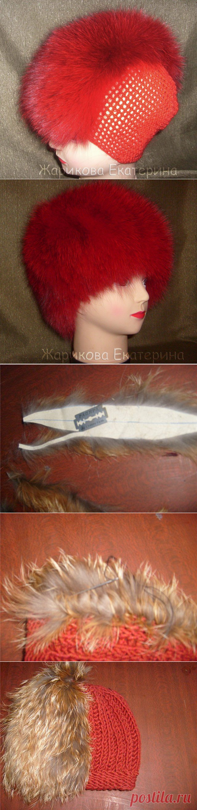 Набрать на прямые спицы число петель, равное окружности головы. Вязать: 10 рядов чулочная вязка, 30 рядов резинка 1х1, 10 рядов чулочная вязка. Петли закрыть.