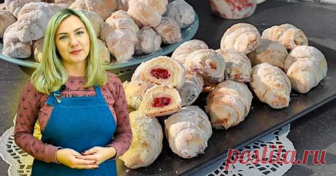 Творожные рогалики с сахаром - appetitno.net Ингредиенты: –Мука — ~ 400 г. –Творог — 400 г. –Сахар — 150 г. –Масло (маргарин) — 250 г. –Ванильный сахар (по желанию) — 1 ч.л. –Разрыхлитель — 2 ч.л. Приготовление: 1. Растираем творог и масло комнатной температуры, добавляем муку и разрыхлитель. 2. Замешиваем рыхлое но эластичное тесто. 3. Ставим тесто в холодильник на 1 час. 4. Затем делим на 2 части и раскатываем одну часть в круг. 5. Посыпаем круг сахаром с ванильным сахар...