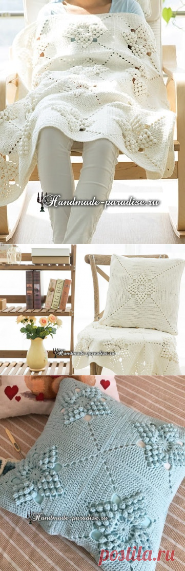 Красивый узор для вязания подушки и пледа