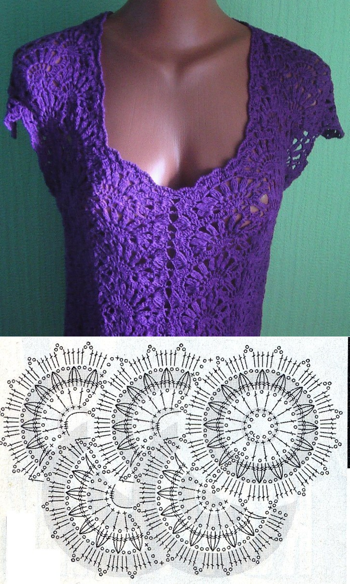 Джемпер в оранжевых тонах - схема вязания крючком.