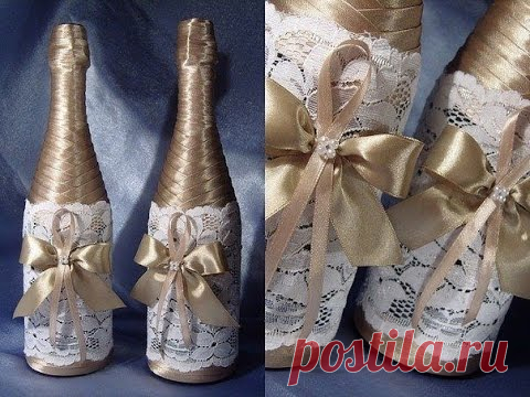 Украшение свадебных бутылок