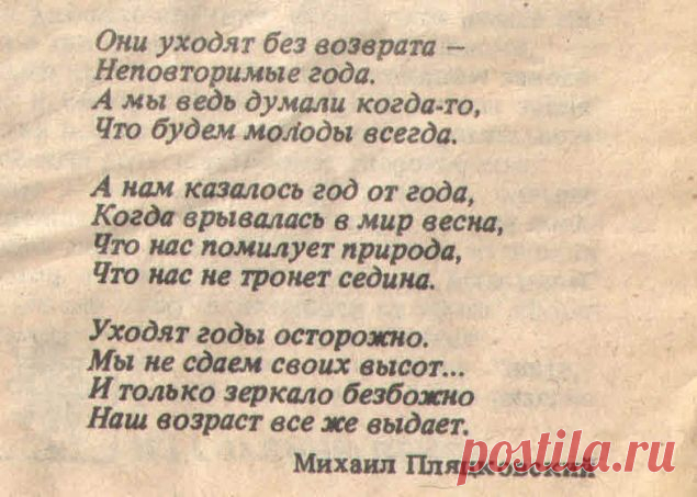 Она: Когда мне будет восемьдесят пять, Когда начну я тапочки терять, В бульоне размягчать кусочки хлеба, Вязать излишне длинные шарфы, Ходить, держась за стены и шкафы, И долго-долго вглядываться в небо, Когда все женское, что мне сейчас дано, Истратится, и станет все равно - Уснуть, проснуться или не проснуться, Из виданного на своем веку Я бережно твой образ извлеку, И чуть заметно губы улыбнутся... Он: Когда мне будет восемьдесят пять, По дому буду твои тапочки искать, Ворчать на то, что…