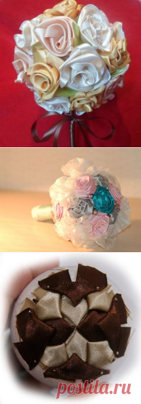 Учимся делать букеты, топиарий и артишок из атласных лент