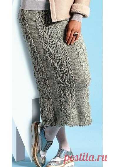 Юбка вязаная спицами прямая. Вязаная юбка спицами с аранским узором