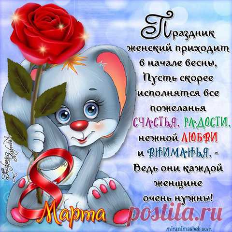 С наступающим 8 марта. Открытка-картинка женщине со стихами