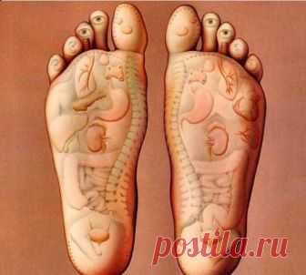 Найдите на стопе «позвоночник». Сядьте на пол со скрещенными ногами. Возьмите в руки любую стопу. Линия между пяткой и большим пальцем на внутреннем "ребре" - проекция позвоночника. Визуально разделите эту линию на части: крестец, поясница, грудной и шейный отдел. Большим пальцем с усил...