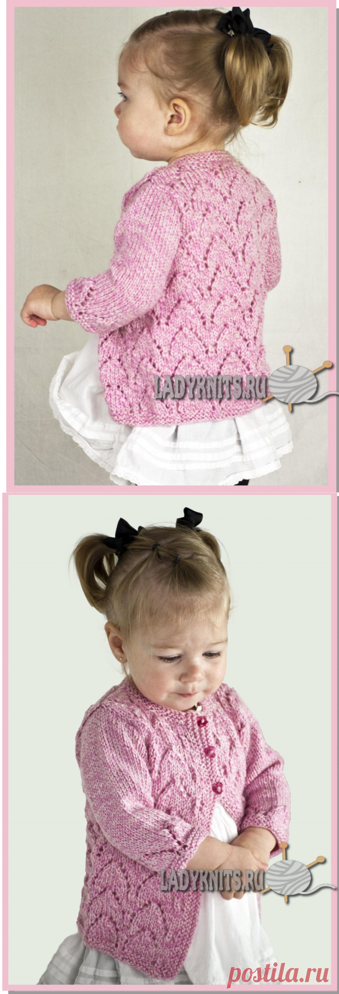 Ажурный кардиган спицами для девочки от 3 месяцев до 2 лет