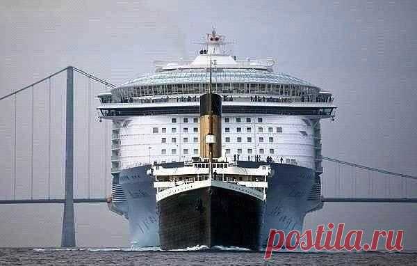 Разница размеров "Титаника" и и самого крупного круизного лайнера.