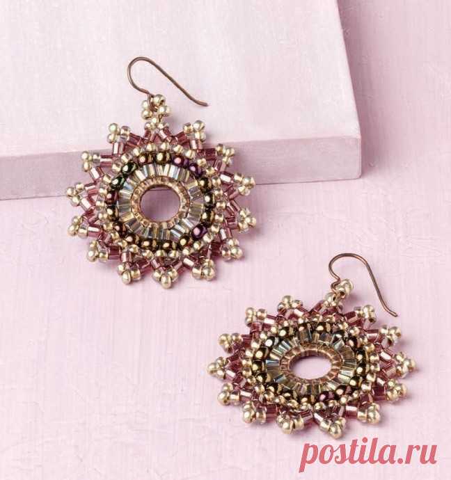 Серьги "Чертополох" Серьги "Чертополох"Используйте «кирпичик» и «елочка», чтобы создать пару сережек с цветами, навеянными пустыней.Материалы2 г прозрачных бисерин с бронзовым покрытием 8° (A)1 г металлических бусин античного золота 8° (B)2 г прозрачных аметистовых цилиндрических бисерин 8° (C)2 г коричневых...