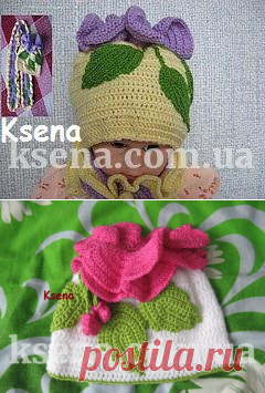 №56 Шапкка с цветочками - Шапочки - лето - - Вязяные вещи - Вязаные вещи на заказ