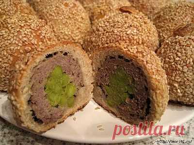 Хлебные колобки с начинкой Это очень оригинальное и вкусное блюдо. Очень удобно в качестве перекуски - не нужно делать бутерброды, все уже готово. Можно подавать, как второе или как праздничное блюд Рецепт тут