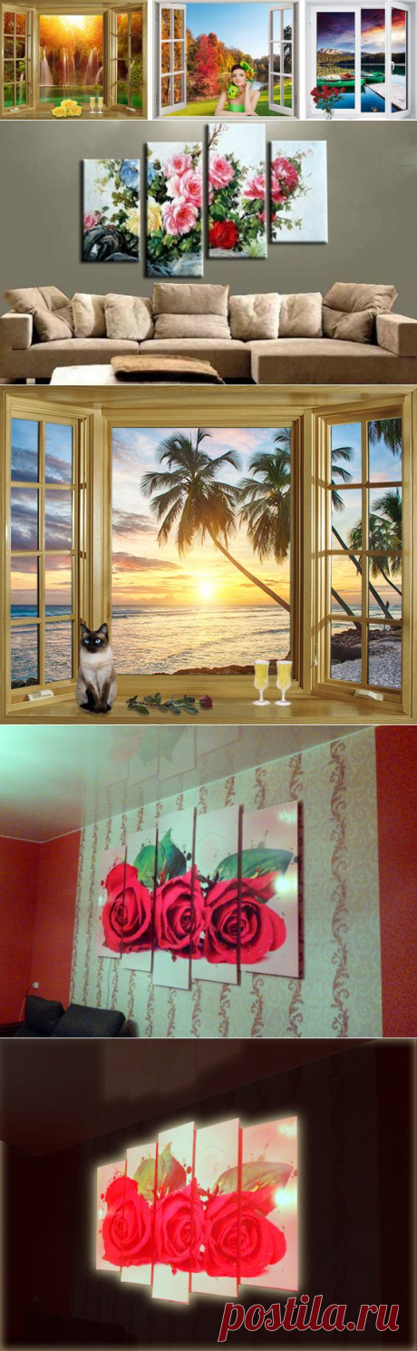 Светильники - картины в виде 3D окна
