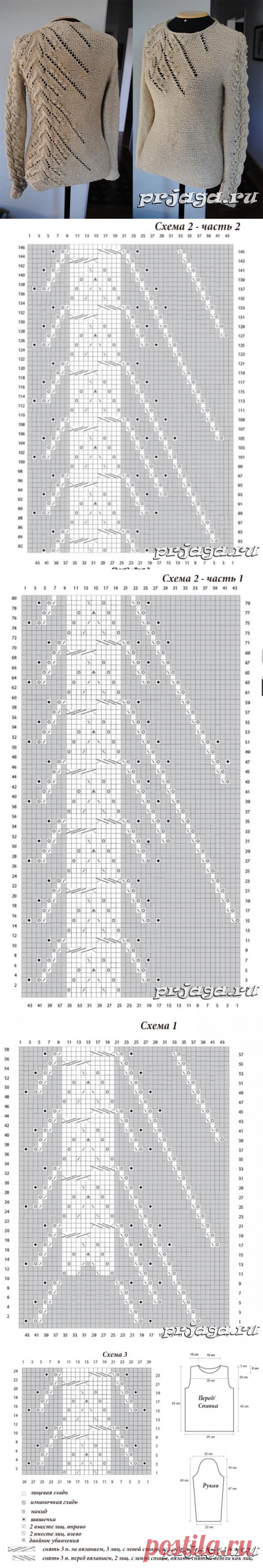 Пуловер с косами и узором зигзаг » Вязание крючком и спицами схемы и модели