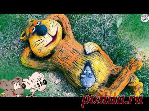 Из ЦЕМЕНТА и пакетов сделали СВОИМИ РУКАМИ чудного кота | Для дачи | Cement crafts for the garden