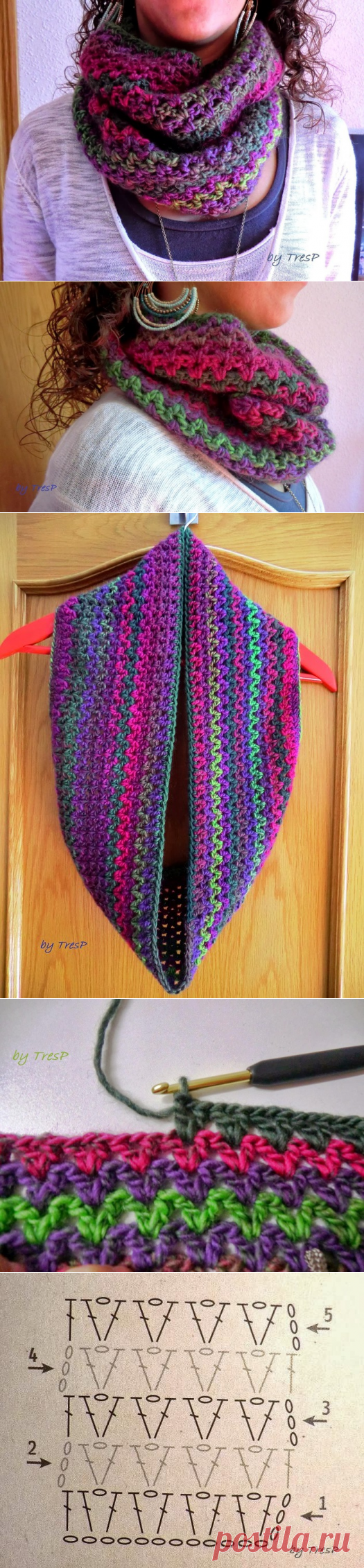 РАЗНОЦВЕТНЫЙ ШАРФ - СНУД КРЮЧКОМ