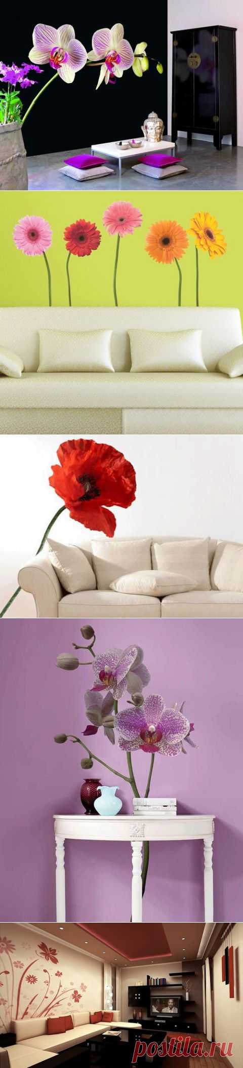 Виниловые наклейки на стену с изображением цветов наполнят ваш дом особым очарованием и красотой. Испокон веков люди стремились украсить свое жилище цветами: в вазах, в вазонах, искусственными или нарисованными. И вот последний писк интерьерной моды – декоративные виниловые стикеры с цветами. Посмотрите как они украшают комнату: