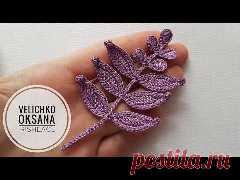 Веточка из листьев и блок-столбиков крючком. Ирландское кружево. Irish lace.