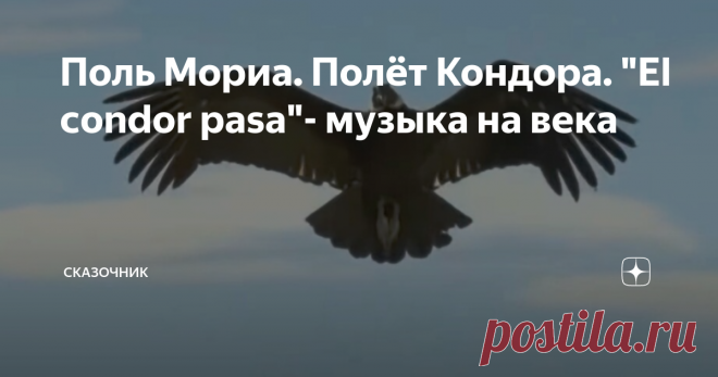Поль Мориа. Полёт Кондора. "El condor pasa"- музыка на века Считается, что мелодия данной композиции дошла до нас из глубины веков, возможно даже от цивилизации инков. Подсчитано, что на сегодняшний день существует более 4000 версий этой мелодии и более 300 тектов.