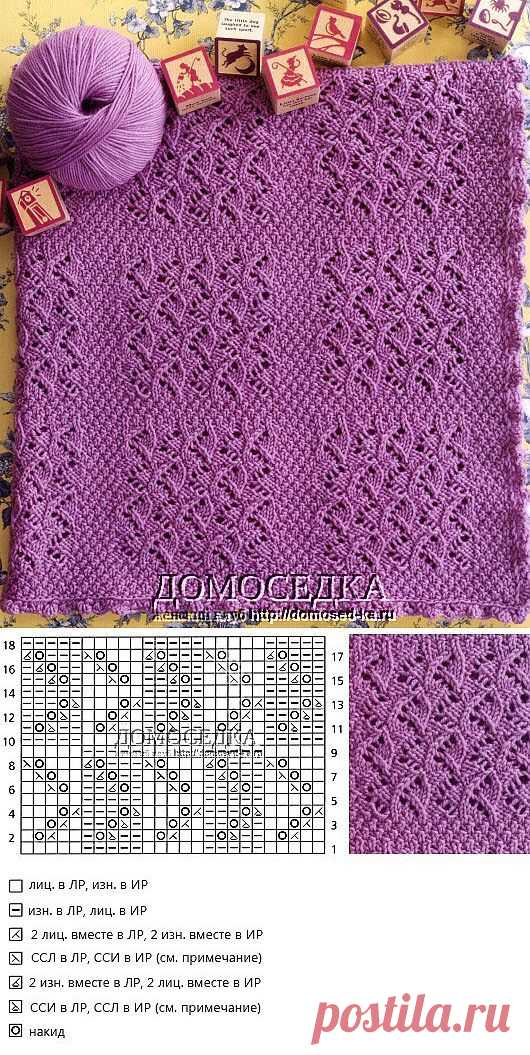 Узор спицами 564 «простой ажурный узор 4» | каталог вязаных спицами узоров