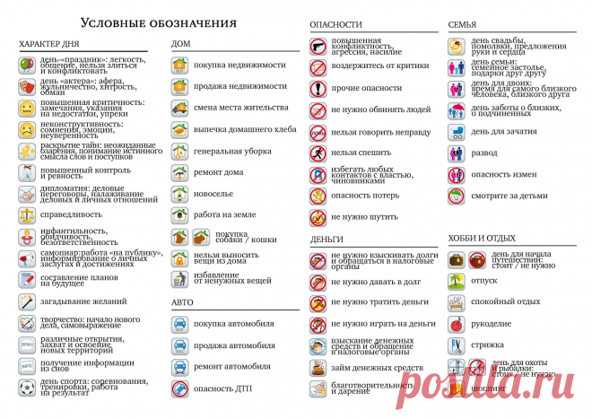 условные обозначения в календаре Литвинова