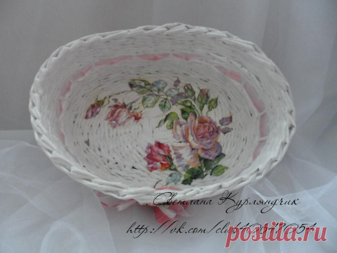 Корзинка из комплекта "Зефир". Плетение из газетных трубочек (Елена Строчук), декупаж.