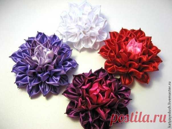 Украшения из атласных лент. Очень красиво! Мастер-класс .