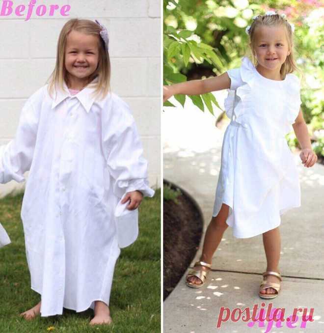 Креативная мама делает крутую одежду для своей дочки из старых папиных рубашек.