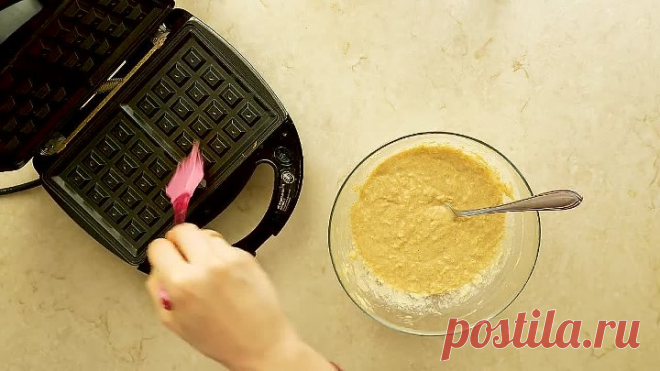 1. Этот рецепт приготовления вафель совсем простой, но требует времени. Когда сделаете тесто, ему нужно дать постоять минут 40. Масло предварительно следует растопить.