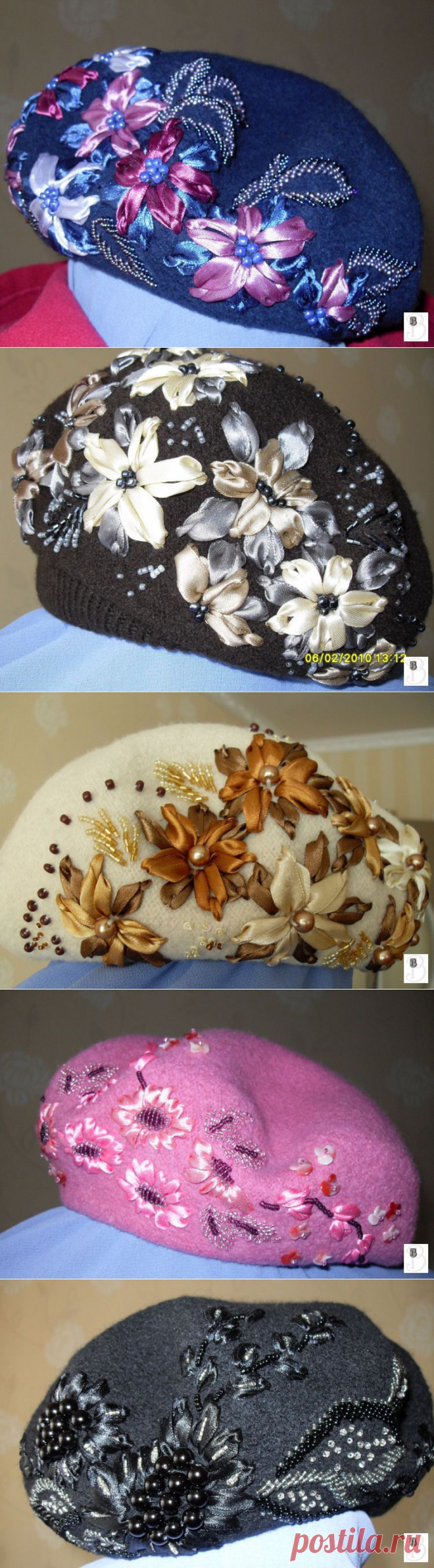 БЕРЕТЫ... вышивка лентами и бисером... КРАСОТА НЕОПИСУЕМАЯ....