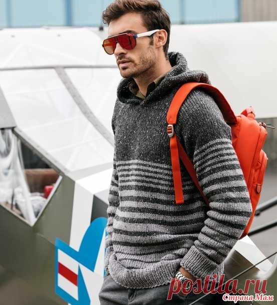 Мужской пуловер с капюшоном - Вязание спицами - Страна Мам