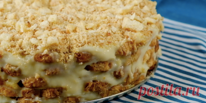 По вкусу десерт очень напоминает торт «Полет» с безе и орехами. Использовать мы будем всего 4 ингредиента, а в итоге получим невероятно красивый и очень вкусный десерт. Невероятно хрустящий торт готовится на скорую руку: на раз, два, три.