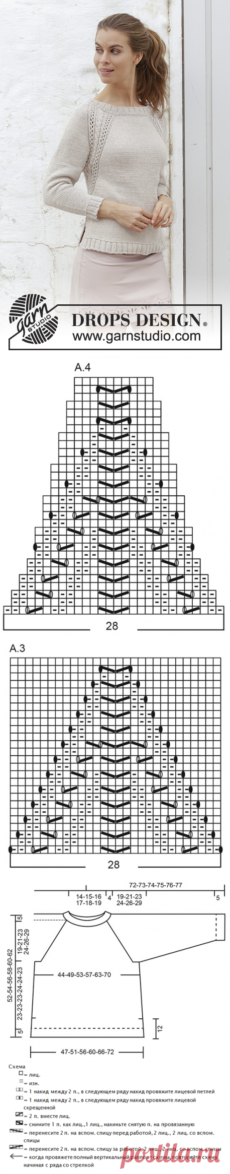Элегантный джемпер с полосами ажурного узора - схема вязания спицами. Вяжем Джемперы на Verena.ru