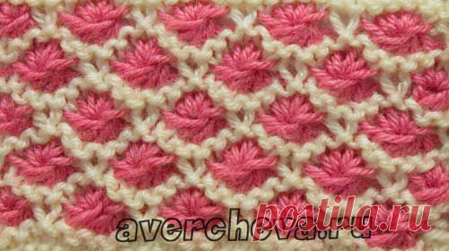 Многоцветный узор для кругового вязания. Очень похож на классический жаккардовый, но вяжется в технике ложного (ленивого) жаккарда, при помощи снятых петель. Поэтому узор прост в исполнении и не требует большого опыта. Отлично подойдет для вязания варежек, носков, шапок по кругу. Схема и описание вязания узора.