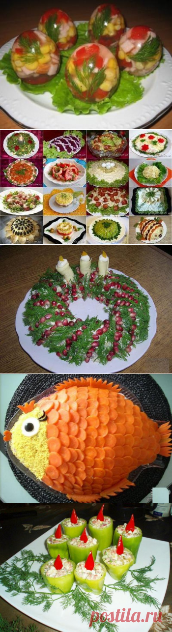 Заливные блюда. Салаты (рецепты). Варианты оформления салатов. Варианты оформления мясных нарезок.