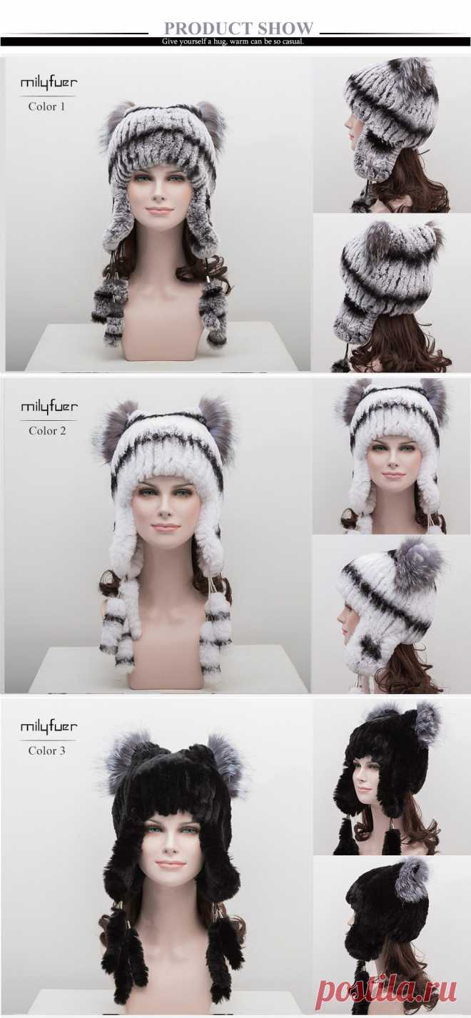 Milyfuer реального кролика рекс Мех животных Шапки женский волос модные Мех животных Кепки S осень зима Утепленная одежда уха Велоспорт Кепки вязаная шапка для для женщин Кепки купить на AliExpress
