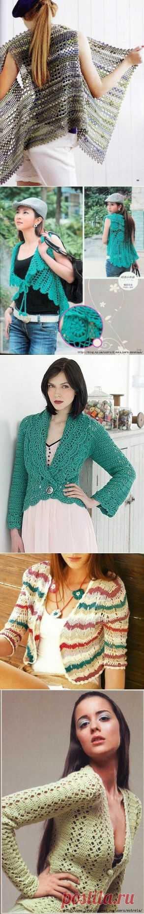 Кардиган-накидка, вязаная спицами для жаркого лета.
