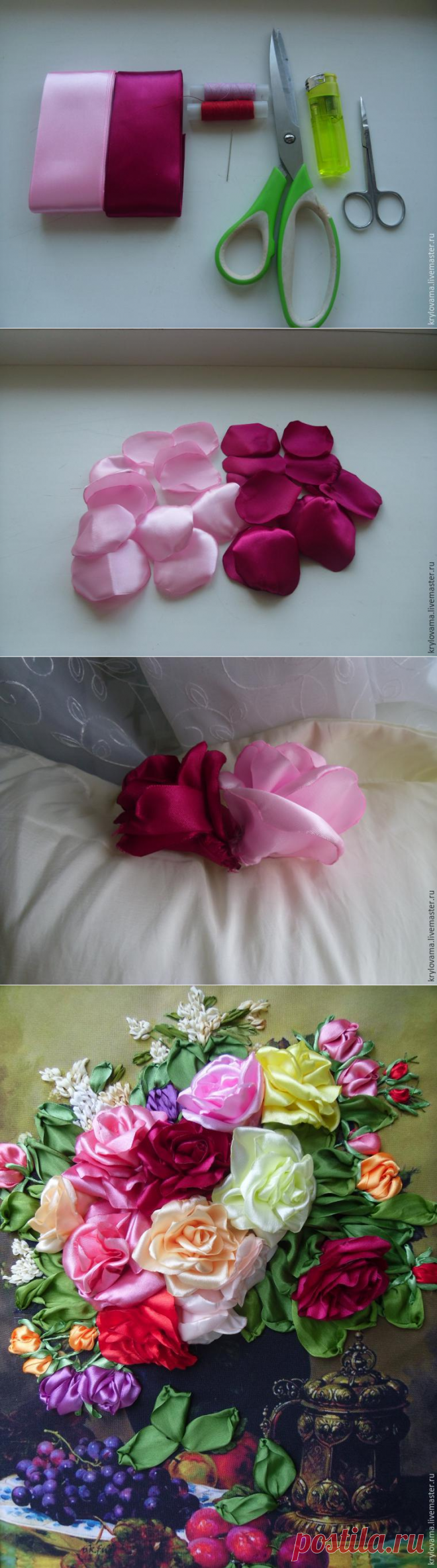 Вышиваем розу лентами - Ярмарка Мастеров - ручная работа, handmade