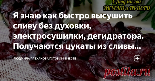 Я знаю как быстро высушить сливу без духовки, электросушилки, дегидратора. Получаются цукаты из сливы или вяленая слива Слива этим способом сушится, от силы, два дня, а ведь я живу в квартире и у меня нет возможности разложить её на больших поверхностях на солнце. Слива получается очень вкусная, сладкая, мягкая, эластичная, не пересушенная. Она похожа на цукаты и её можно есть вместо конфет, добавлять в десерты и в выпечку. А ещё таким способом можно делать вяленую сливу,...