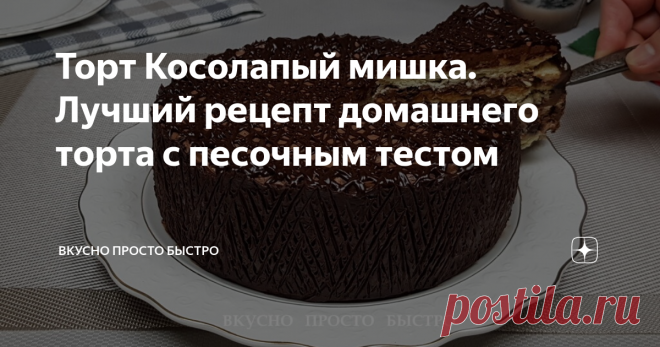 Торт Косолапый мишка. Лучший рецепт домашнего торта с песочным тестом Всем привет! Меня зовут Наталия и я рада Вас приветствовать на своём канале Вкусно Просто Быстро! Сегодня я хочу предложить Вам приготовить очень вкусный, многими любимый торт Косолапый мишка. Вариантов его приготовления много. Я хочу предложить свой, который мне больше всего нравится - с рассыпчатым песочным тестом, шоколадным кремом, шоколадом, арахисом и меренгой. Пошаговый видео рецепт можно посмотре...